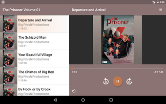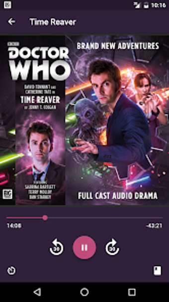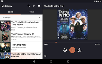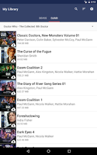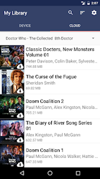 Big Finish Audiobook Player-appen är utformad för att göra det enkelt att få de ljudböcker du vill ha från webbplatsen, så att du kan lyssna på dem utan att behöva vänta på att de laddas ner. Du kan också välja att ladda ner dem direkt till din enhet, vilket innebär att du kan lyssna på dem även om du inte har en Wi-Fi-anslutning.